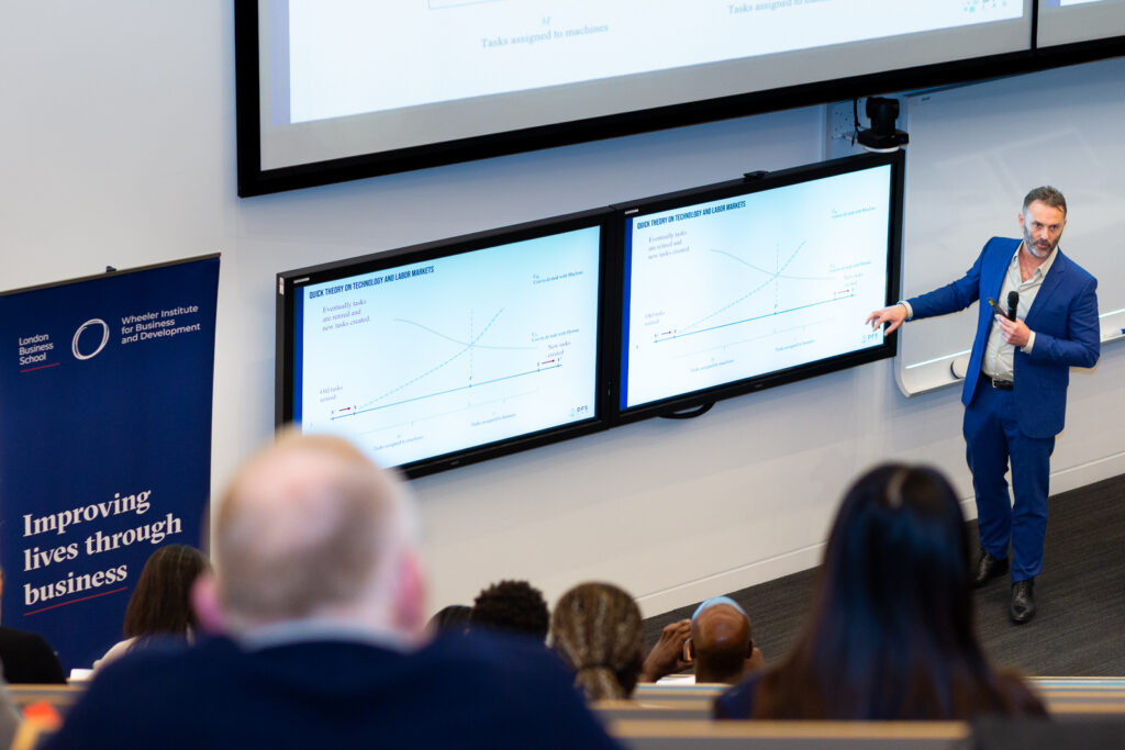 Artificial intelligence is reshaping labour markets worldwide. For African economies, where more than 20 million young people will enter the workforce each year between now and 2050, the stakes are especially high. The Wheeler Institute for Business and Development, DFS Lab, and the LBS Data Science and AI Initiative recently held a panel discussion that brought Henry Obi CBE, Partner at Helios Investment Partners and LBS alum, Ido Sum, Former Partner at TLcom capital, Tokunboh Ishmael, Managing Partner and Co-founder of Alitheia Capital, and moderator Jake Kendall, General Partner at DFS Lab. The panel explored how AI may influence employment, competitiveness and investment across the continent, and what it will take to ensure these changes are inclusive.