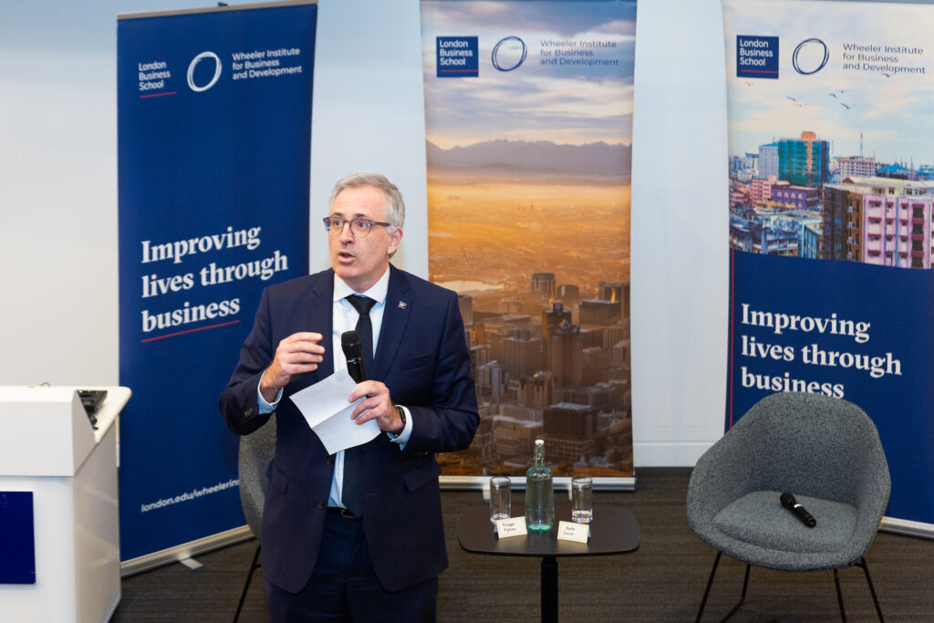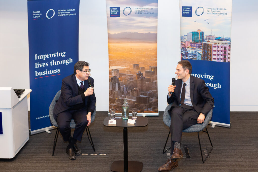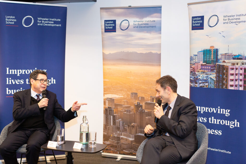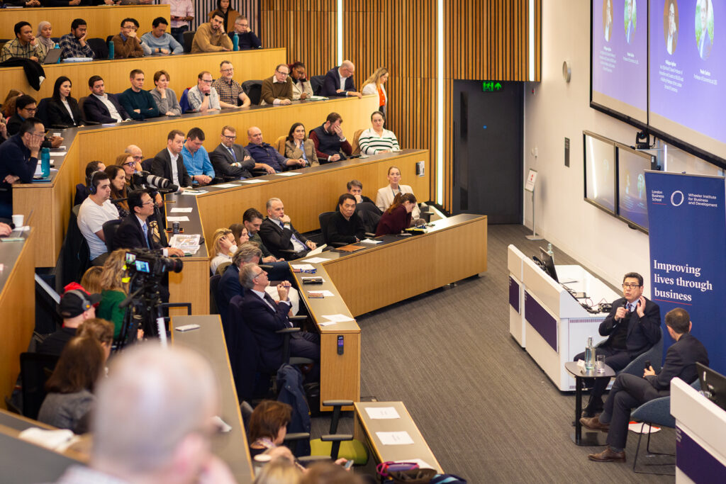 The Wheeler Institute for Business and Development was delighted to host Philippe Aghion, recent Nobel Laureate of Economics, for a discussion on the relationship between innovation, competition, institutions, and long-run economic growth. The event was opened by Sergei Guriev, Professor of Economics and Dean of LBS, and moderated by Paolo Surico, Professor of Economics at LBS. It marked the first in a limited series of conversations on Public Policy in the Age of Innovation