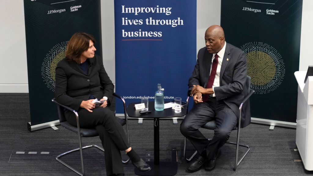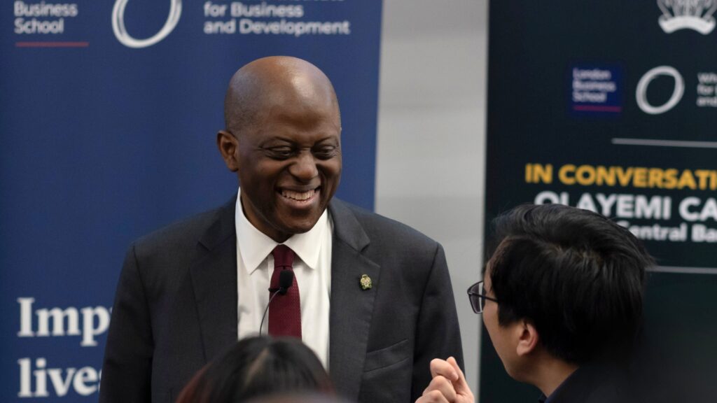 In partnership with the Central Bank of Nigeria and with support from J.P. Morgan, Goldman Sachs, the Wheeler Institute for Business and Development at London Business School welcomed Olayemi Cardoso, Governor of the Central Bank of Nigeria (CBN), for an in-depth conversation with Professor Hélène Rey, Lord Bagri Professor of Economics at LBS. A recording of this event is available in this blog and on the Wheeler Institute YouTube channel here.